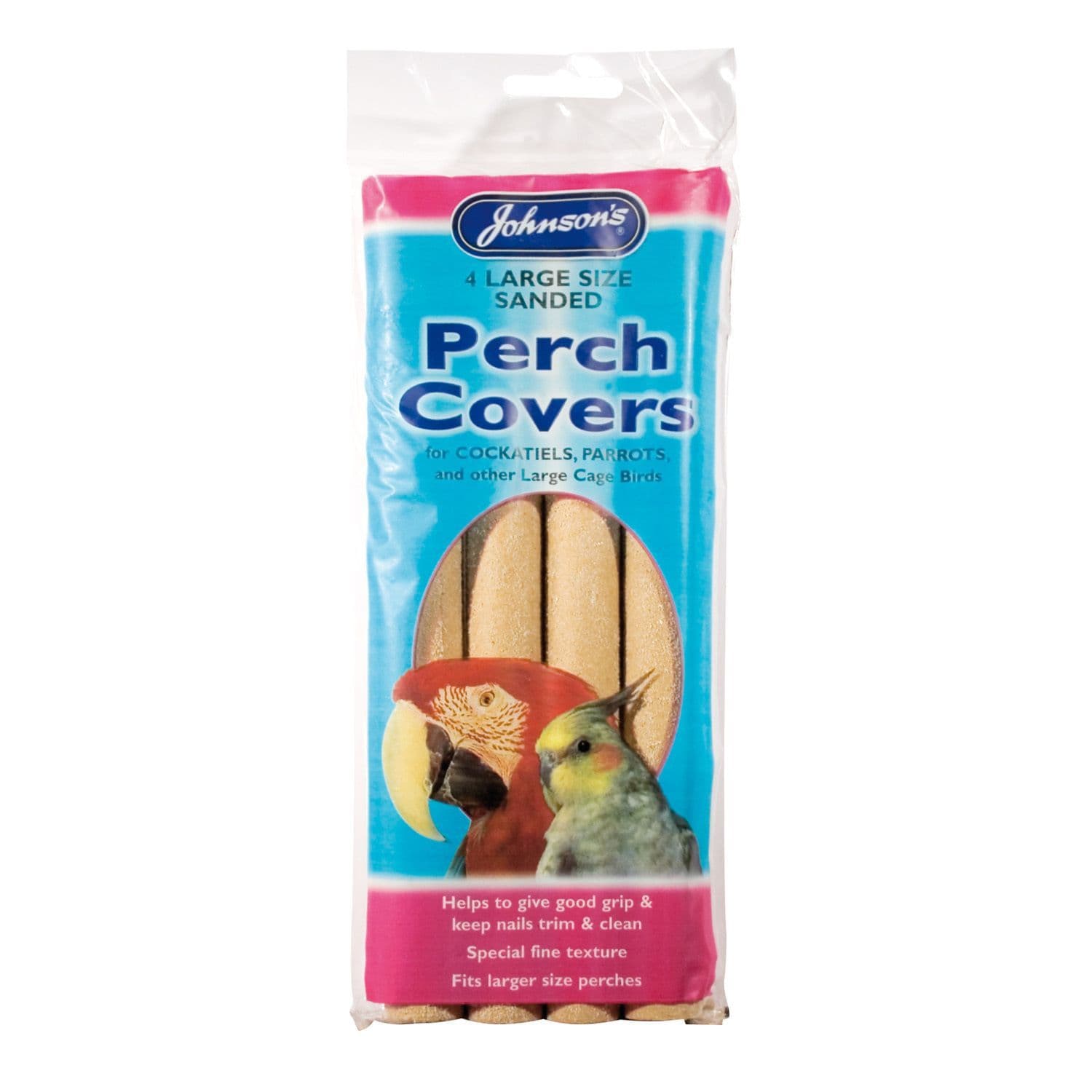 The Johnson"s Sanded Perch Covers are made to particularly suit the smaller perches of birds like budgies and canaries. It is designed with a grainy, sanded texture that helps to clean and trim your bird"s nails. It supports and strengthens its claws so that it can hold onto it firmly.